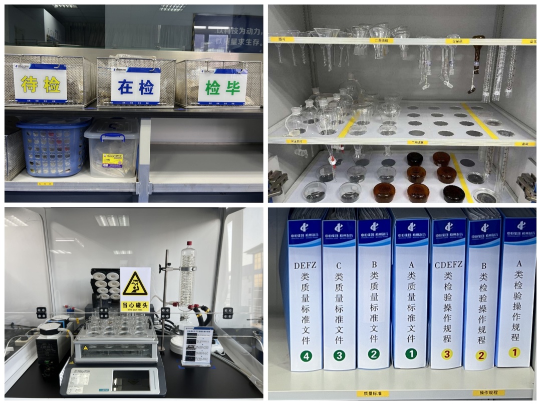 質(zhì)量是企業(yè)的根本。在質(zhì)量控制工作中,每個(gè)細(xì)微環(huán)節(jié)都需要認(rèn)真細(xì)致、規(guī)范操作,才能保證結(jié)果精準(zhǔn)無誤。質(zhì)量控制部通過改善實(shí)驗(yàn)室環(huán)境,保證檢驗(yàn)操作正確開展。樣品按待檢、在檢、檢畢分顏色擺放,操作不易弄混。對(duì)文件、物品進(jìn)行分區(qū)定置,使用定位膠帶或分隔板進(jìn)行分隔,便于快速、準(zhǔn)確查找。在檢驗(yàn)儀器旁定置圖文并茂的操作規(guī)程,便于閱讀,提高了檢驗(yàn)人員操作的準(zhǔn)確率。這一系列舉措使得檢驗(yàn)環(huán)境大大改善,提高了檢驗(yàn)人員的效率與準(zhǔn)確率。