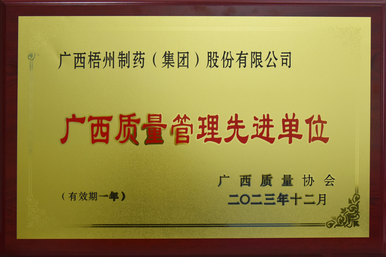 連續(xù)多年榮獲“廣西工業(yè)企業(yè)質(zhì)量管理標桿”“廣西質(zhì)量管理先進單位”稱號,是對梧州制藥在質(zhì)量管理成效方面的充分肯定和高度認可。梧州制藥將進一步推廣應(yīng)用先進質(zhì)量管理方法,積極開展質(zhì)量創(chuàng)新活動,不斷提煉總結(jié)富有企業(yè)特色的質(zhì)量管理模式,積極發(fā)揮標桿示范引領(lǐng)作用,促進產(chǎn)品和服務(wù)質(zhì)量邁向卓越,實現(xiàn)質(zhì)量、效率和效益的穩(wěn)步提升。