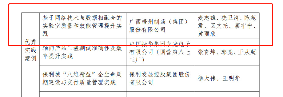 近日,梧州制藥質(zhì)量管理實踐案例《基于網(wǎng)絡技術與數(shù)據(jù)相融合的實驗室質(zhì)量和效能管理提升實踐》在商業(yè)科技質(zhì)量中心、《企業(yè)管理》雜志社共同組織開展的2023年企業(yè)質(zhì)量管理優(yōu)秀案例征集活動中,成功入選2023年企業(yè)質(zhì)量管理優(yōu)秀實踐案例。