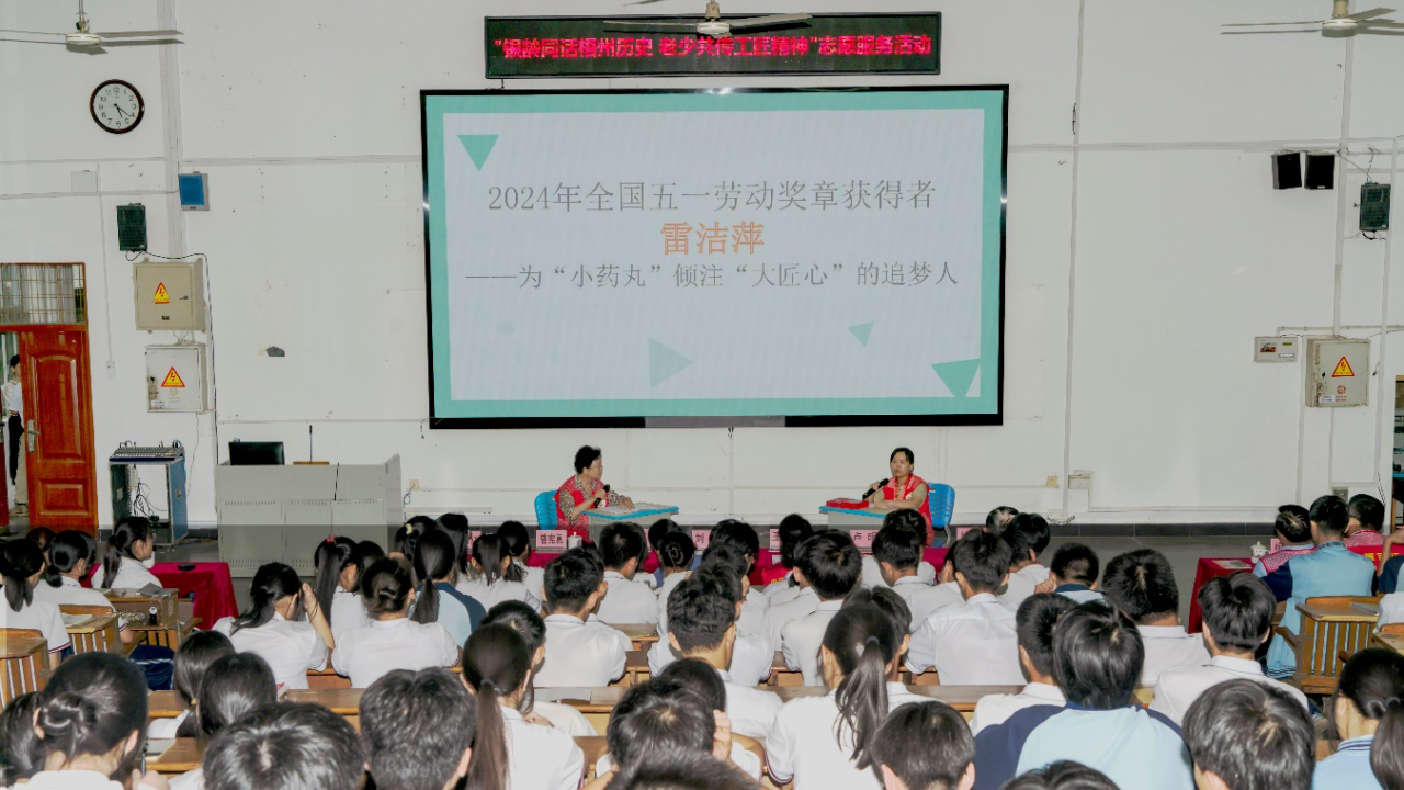近日,在梧州市第一中學,一場別開生面的“巾幗勞模進校園”開講了,由中共梧州市委員會老干部局主辦的“銀齡同話梧州歷史 老少共傳工匠精神”志愿服務活動,梧州制藥固體車間工藝與技術(shù)主管雷潔萍受邀作為宣講代表出席活動。