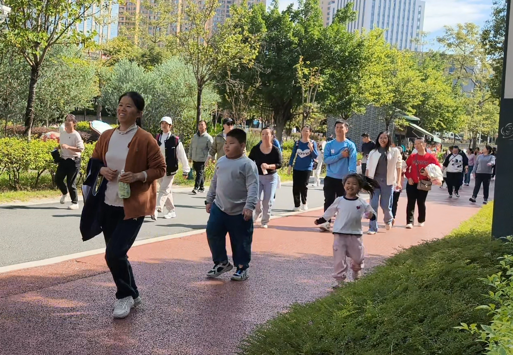 游戲環(huán)節(jié)結(jié)束后,工會組織開展了親子環(huán)湖健走活動。50余組家庭攜手出發(fā),沿澄澈的玫瑰湖畔漫步前行。為保障活動安全有序,工會提前勘察路線,沿途設置3個補給站,志愿者貼心提供飲用水和小食品。家長與孩子們或緩步交談,或駐足賞景,或拍照留念,將湖畔的美景與親子的笑顏一一定格,歡聲笑語縈繞在整個環(huán)湖路上。