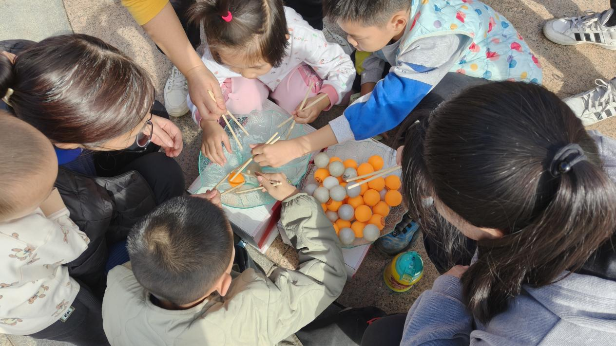 上午9時30分,活動正式拉開帷幕,一場場充滿趣味與溫情的親子游戲輪番上演。“珠行萬里”項目中,家長與孩子手持半圓槽拼接通道,小球滑落時共同默契重整,掌心相對間不僅傳遞著力量,更凝聚著親情;壺中“箭”寶環(huán)節(jié)融入傳統(tǒng)元素,家長們手把手帶領孩子瞄準投擲,每一次成功入壺都引發(fā)全場歡呼;“筷子夾乒乓球”項目磨練耐心技巧,孩子們模仿家長動作小心翼翼夾球,有的家庭還創(chuàng)意發(fā)明“接力夾球”玩法,現(xiàn)場加油聲、歡呼聲交織成群。
