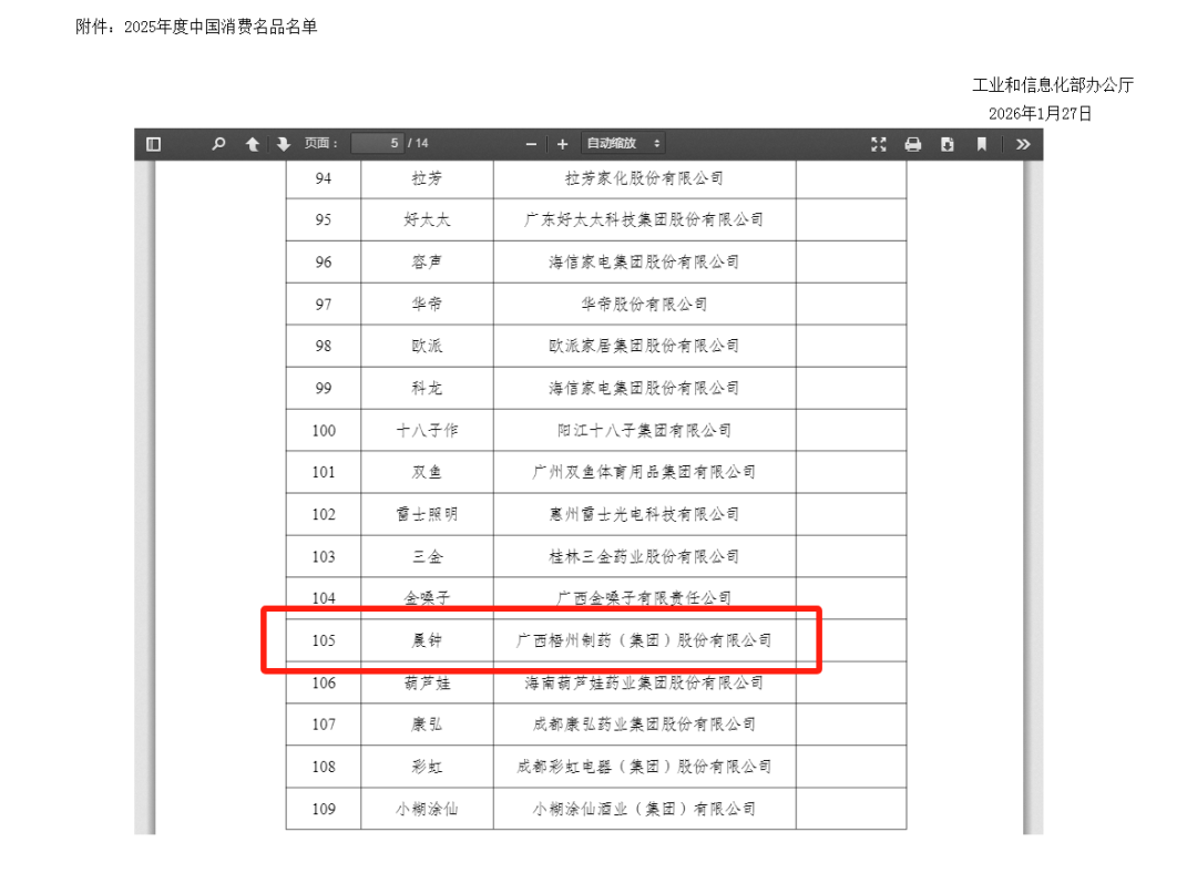 近日,工業(yè)和信息化部辦公廳公布了2025年度中國消費名品名單,中恒集團旗下廣西梧州制藥(集團)股份有限公司“晨鐘”品牌憑借卓越的產(chǎn)品品質(zhì)、深厚的文化底蘊成功入選名單。據(jù)悉,2025年度中國消費名品評選是工業(yè)和信息化部主導的首次國家級消費品牌評選活動,核心目標是打造代表中國品質(zhì)的消費名品方陣,推動消費升級與全球知名品牌培育。“晨鐘”品牌的成功入選,標志著其已躋身國家級優(yōu)質(zhì)消費品牌行列,成為梧州制藥品牌建設歷程中的重要里程碑。